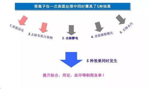 依靠等離子體中活性粒子的“5種作用”,增強粘接、貼合、焊接、涂覆、邦定、除膠效果。被清除的污染物可能為有機物、環(huán)氧樹脂、光刻膠、氧化物、微顆粒污染物等。針對不同的污染物,應(yīng)采用不同的清洗工藝,所選用的氣體也不同。